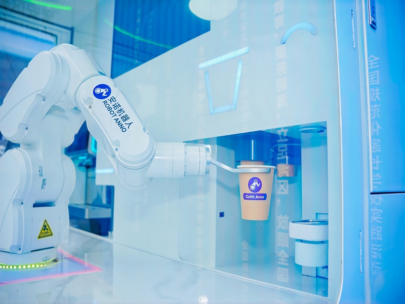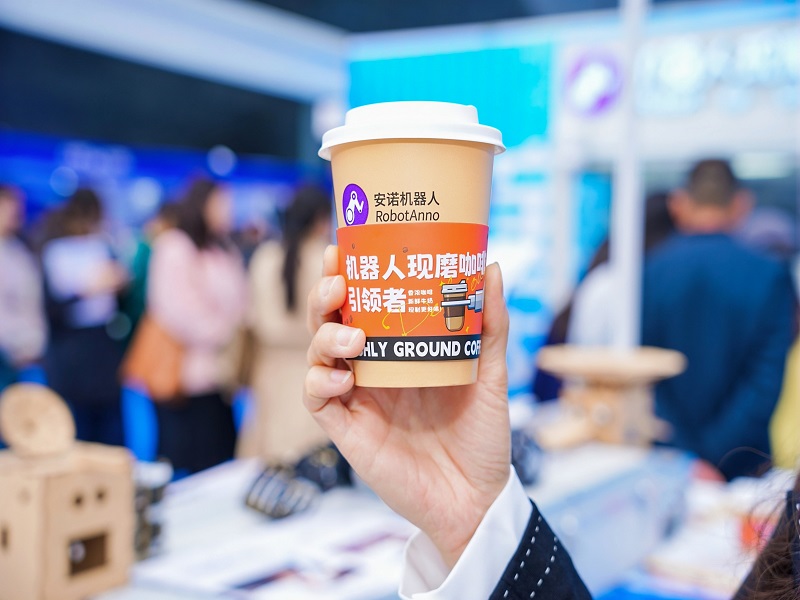 At the exhibition site, a long line of visitors lined up in front of the Anno AI Robot Coffee Kiosk just to savor a cup of coffee carefully ground and brewed by the robot. The robot operates with precision, showing the charm of high technology in every step from coffee bean grinding to coffee brewing.