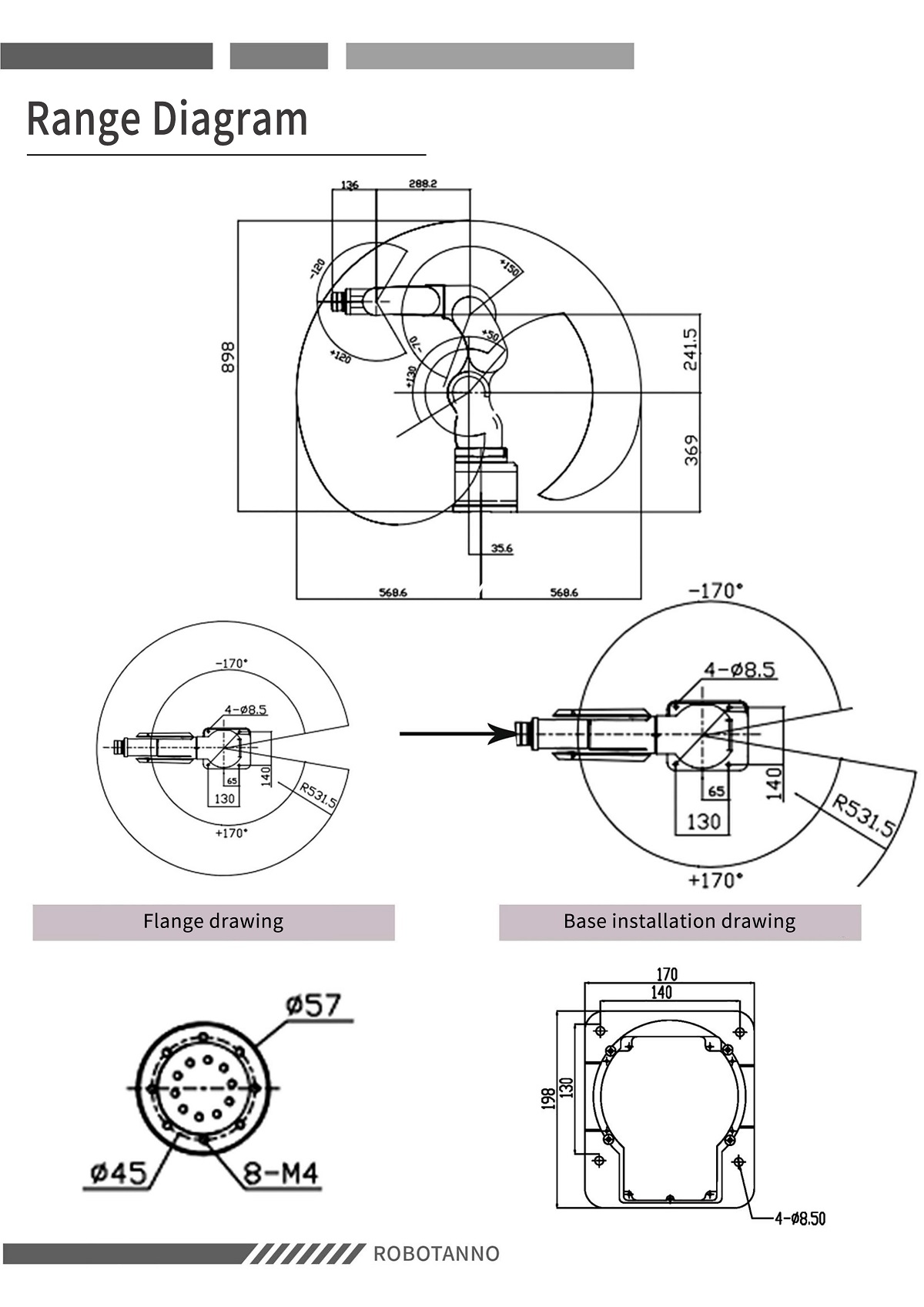 Running radius: 700mm;