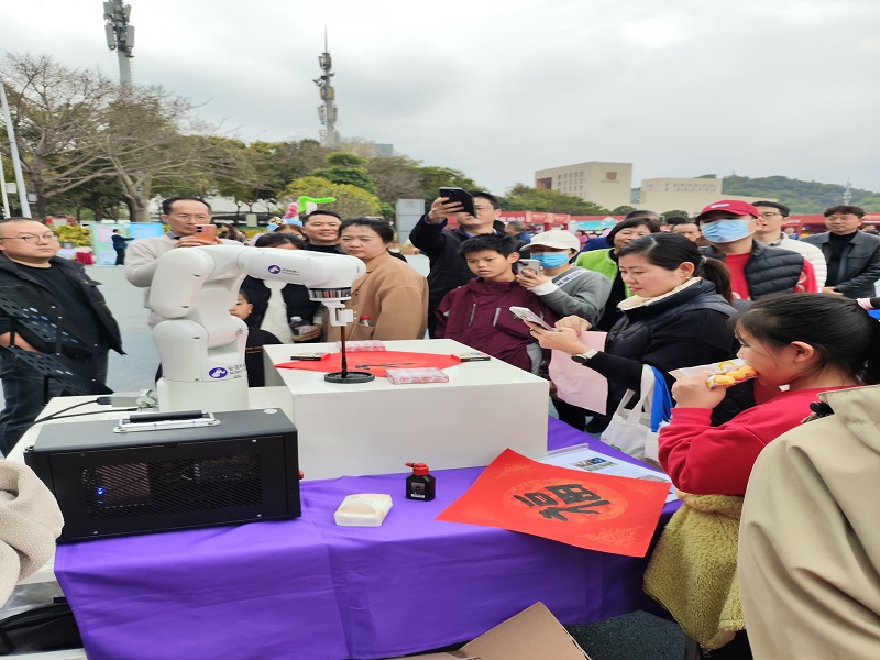 益达注册机器人“新一代书法大师”助力 2025年龙岗区迎春花市,挥墨迎春送福字-益达注册机器人(东莞)有限公司